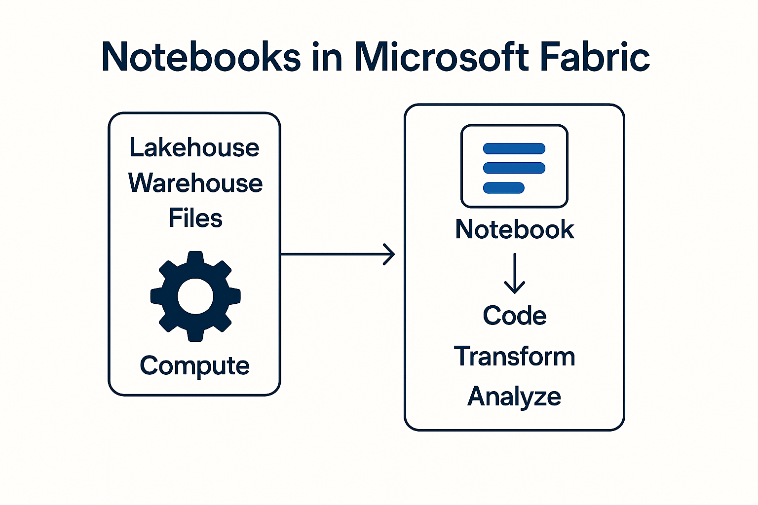 Sie ermöglichen Data Engineers und Analysten, Code auszuführen, Daten zu transformieren und Prozesse zu automatisieren – direkt im Browser und eng verzahnt mit Lakehouse, Warehouse und Pipelines.